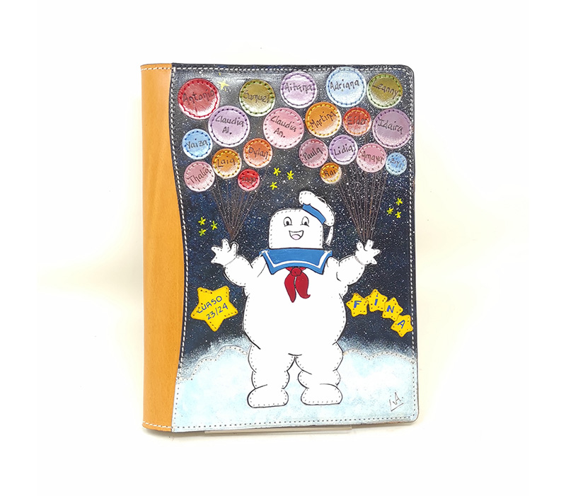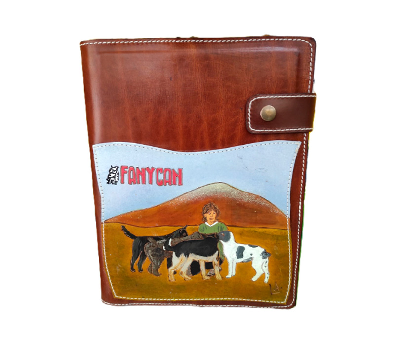 Así nació la idea: una agenda de cuero personalizada, con su logo, su nombre, y una imagen de ella rodeada de sus perros.