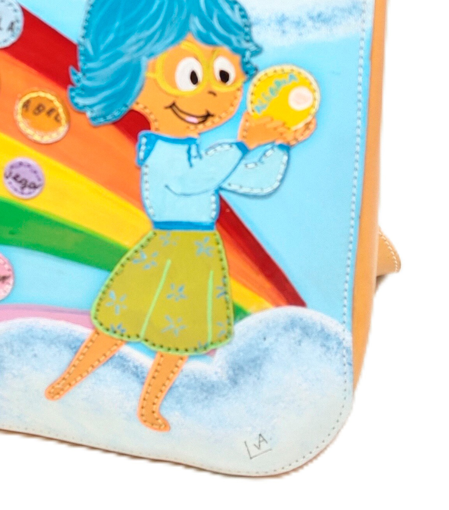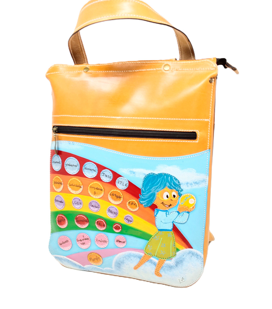Así nació la idea: una mochila con un arcoíris lleno de bolitas.