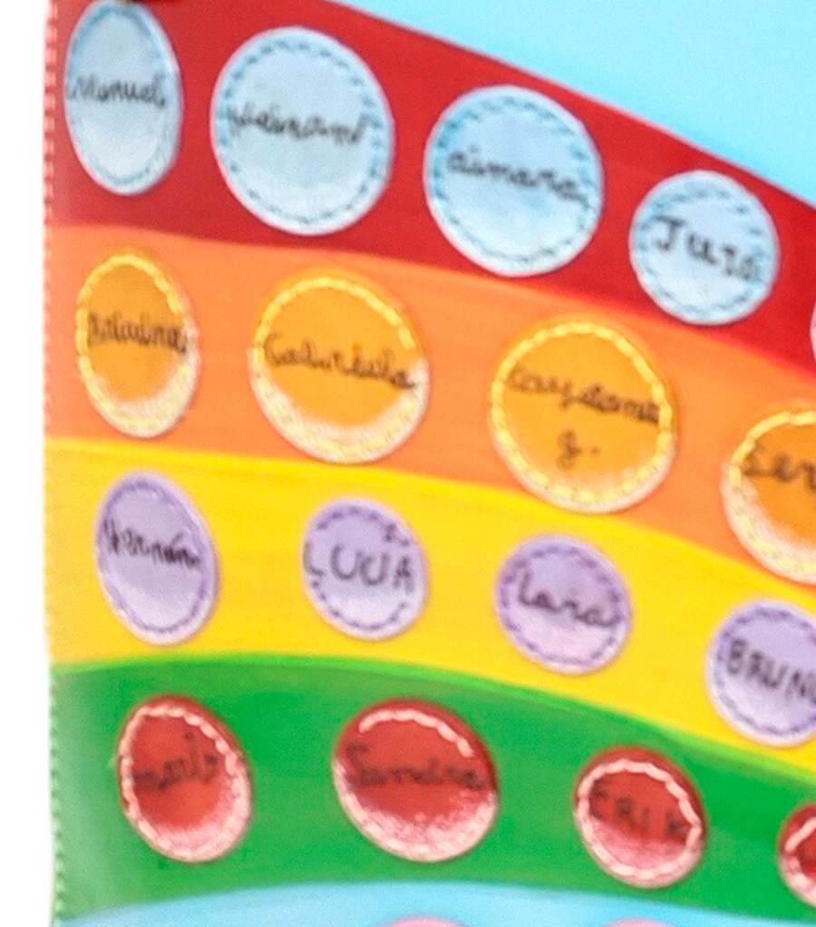 Cada bolita representaba a un alumno. Cada nombre, escrito por su propia mano.