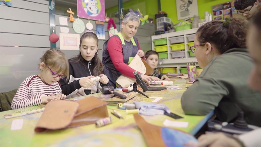 Talleres para niñas y niños a partir de cinco años hasta los 18. Son talleres de una hora de duración que se dan una vez a la semana y durante el curso escolar. Funciona con el sistema de bonos por horas y son ideales como una extraescolar donde aprenderás el oficio de marroquinería de la mano de una artesana, usando pieles de primera calidad, herramientas específicas del oficio y técnicas como coser, cantear, marcar, pintar, ect…