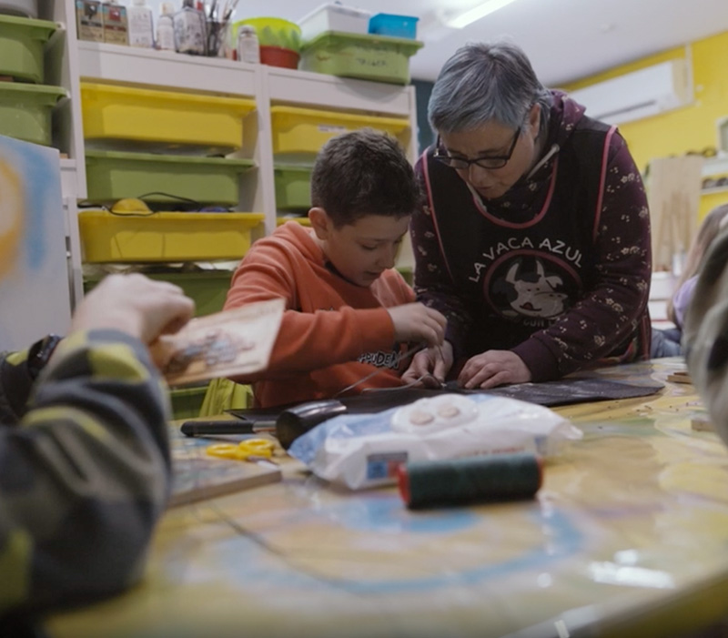 La Vaca Azul también se desplaza a colegios, pueblos, asociaciones o sedes para realizar talleres adaptados a diferentes grupos y edades.